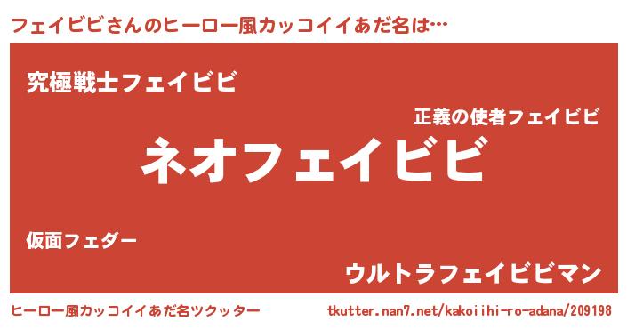 | 男性向けラノベタイトル風あだ名 | 『フェイビビという概念が存在しない退屈な世界 』 |