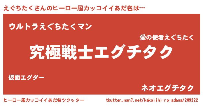 | ファンタジー風あだ名 | 『ゼエグトゥ』『エターナルエグチタクー』 |