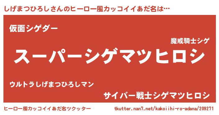 | 胡散臭い通販商品みたいなあだ名 | 『モテモテ間違いなし霊験あらたかなお札…その名も「しげまつひろし」』 |