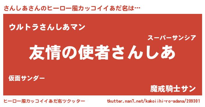 | 男性向けラノベタイトル風あだ名 | 『おまえをオタクにしてやるから、俺をさんしあにしてくれ! 』 |