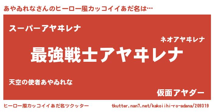 | ヘコむあだ名 | 『あやにー』『あやゐれな(苦笑)』 |
