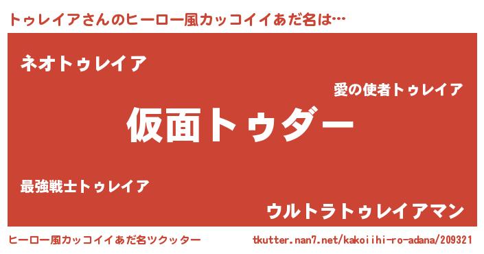 | ヘコむあだ名 | 『トゥレイア(笑)』『牛乳』『トゥお』 |