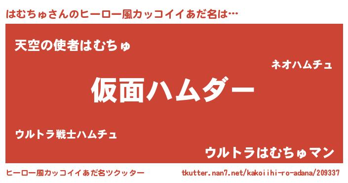 | 意味不明あだ名 | 『住所不定無職はむちゅ(1歳)』 |