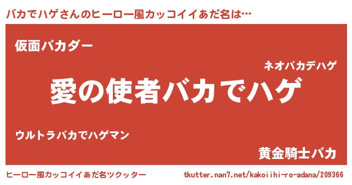 | 女子向けラノベタイトル風あだ名 | 『バカでハゲ恋絵巻』 |