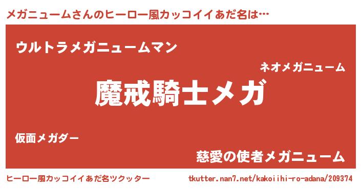 | 男性向けラノベタイトル風あだ名 | 『転生したらメガニュームだった件』 |