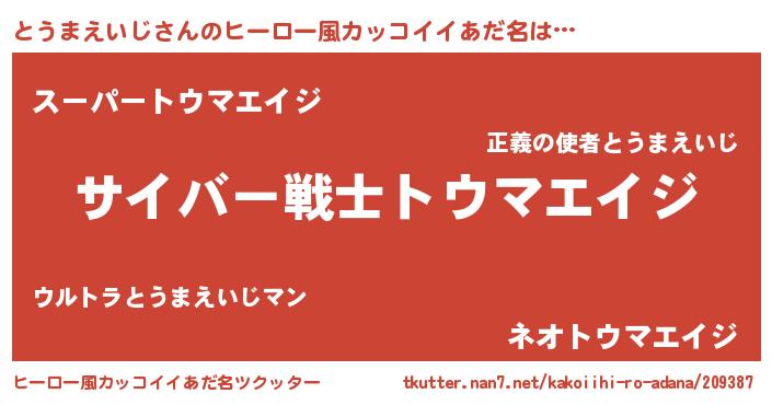 | 男性向けラノベタイトル風あだ名 | 『Re:とうまえいじから始める異世界生活』 |