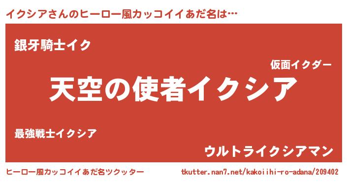 イクシアさんのヒーロー風カッコイイあだ名をツクッター!