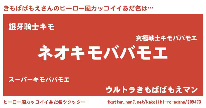 | ヘコむあだ名 | 『きもばばもえ(苦笑)』『きもっちょ』 |