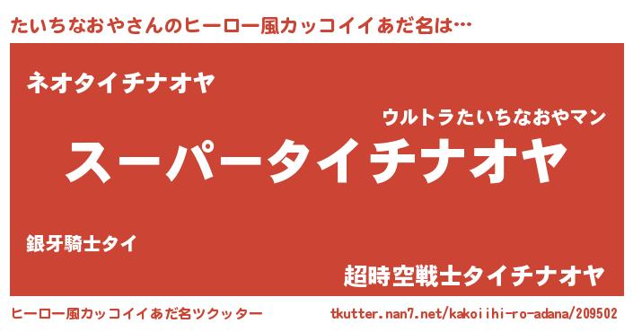 | 胡散臭い通販商品みたいなあだ名 | 『億万長者になれるブレスレット…その名も「たいちなおや」』 |
