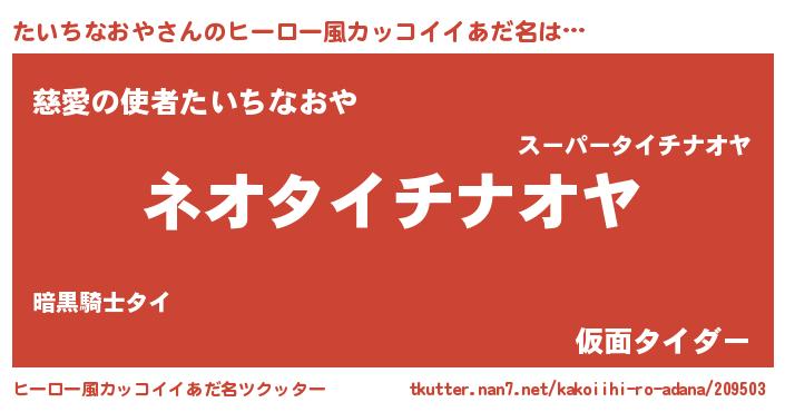 | 男性向けラノベタイトル風あだ名 | 『たいちなおやという概念が存在しない退屈な世界 』 |