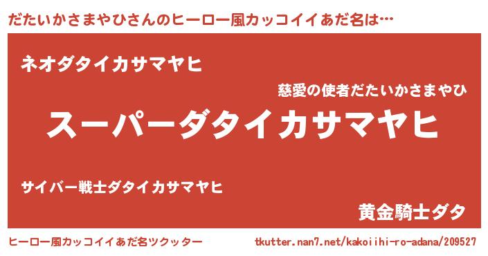 | 男性向けラノベタイトル風あだ名 | 『だたいかさまやひの憂鬱』 |