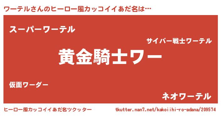 | ポケモン風あだ名 | 『ワーキング』『ヒワーテル』 |
