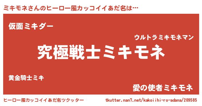 | 男性向けラノベタイトル風あだ名 | 『Re:ミキモネから始める異世界生活』 |