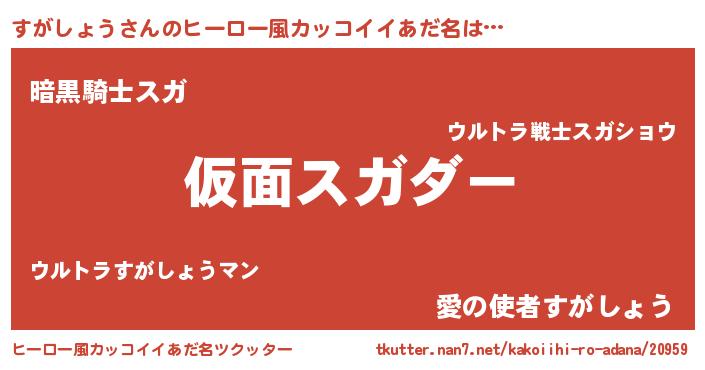 | 胡散臭い通販商品みたいなあだ名 | 『あなたにだけ特別に提供する100年もののヴィンテージワイン…その名も「すがしょう」』 |