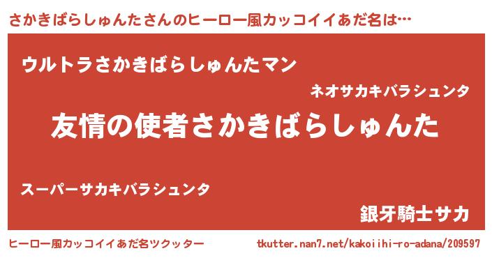 | 男性向けラノベタイトル風あだ名 | 『緋弾のサカキバラシュンタ』 |