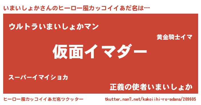 | 男性向けラノベタイトル風あだ名 | 『いまいしょかに滅ぼされるだけの簡単なお仕事です』 |