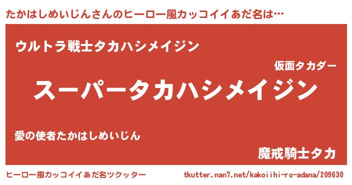 | 女子向けラノベタイトル風あだ名 | 『(仮)たかはしめいじんのやんごとなき事情』 |