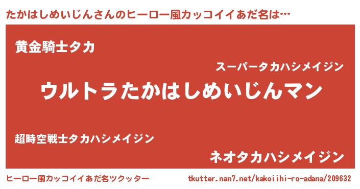 | 料理風あだ名 | 『たかはしめいじんごはん』 |