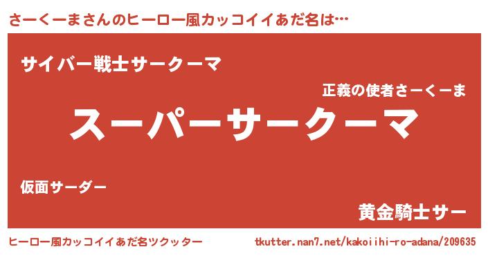 | 男性向けラノベタイトル風あだ名 | 『さーくーまの憂鬱』 |