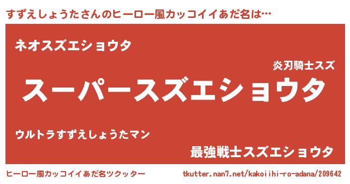| 胡散臭い通販商品みたいなあだ名 | 『億万長者になれる霊験あらたかなお札…その名も「すずえしょうた」』 |
