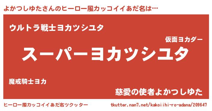 | 男性向けラノベタイトル風あだ名 | 『ヨカツシユタアートオンライン』 |