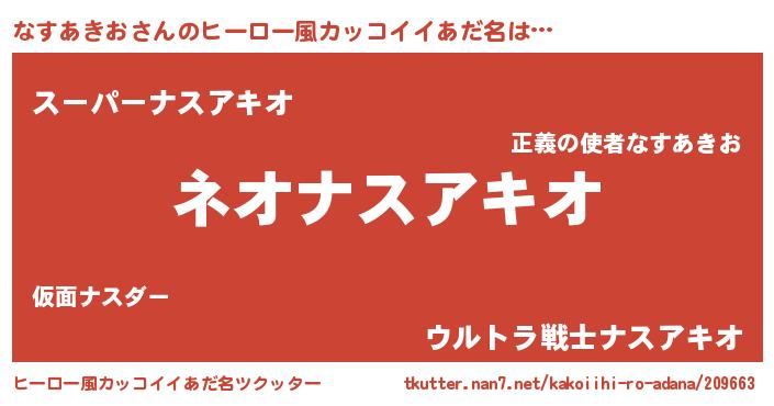 | ヘコむあだ名 | 『なすあきお(笑)』『なすにー』 |