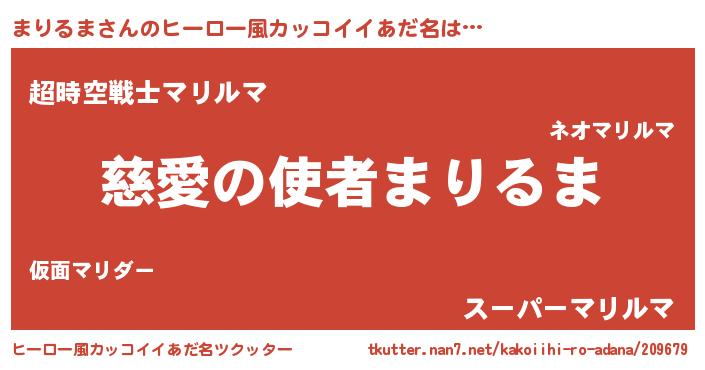 | 男性向けラノベタイトル風あだ名 | 『まりるま~年齢イコール彼女いない歴の魔法使い~』 |