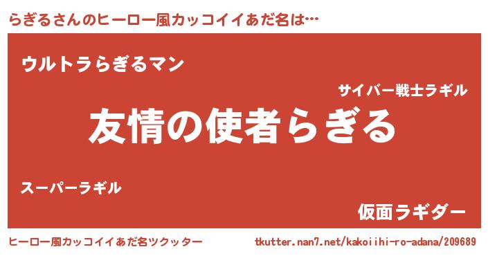 | 男性向けラノベタイトル風あだ名 | 『緋弾のラギル』『はたらくらぎるさま!』 |