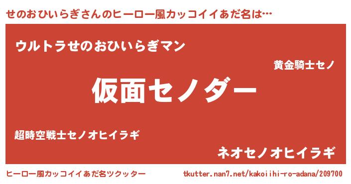 | 胡散臭い通販商品みたいなあだ名 | 『あなたにだけ特別に提供する世界で10本だけ現存している希少なブランデー…その名も「せのおひいらぎ」』 |
