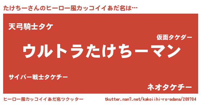 たけちーさんのヒーロー風カッコイイあだ名をツクッター!
