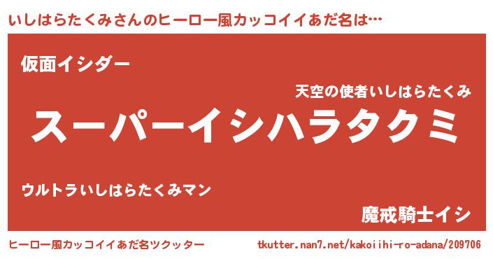 | 胡散臭い通販商品みたいなあだ名 | 『億万長者になれる水晶球…その名も「いしはらたくみ」』 |