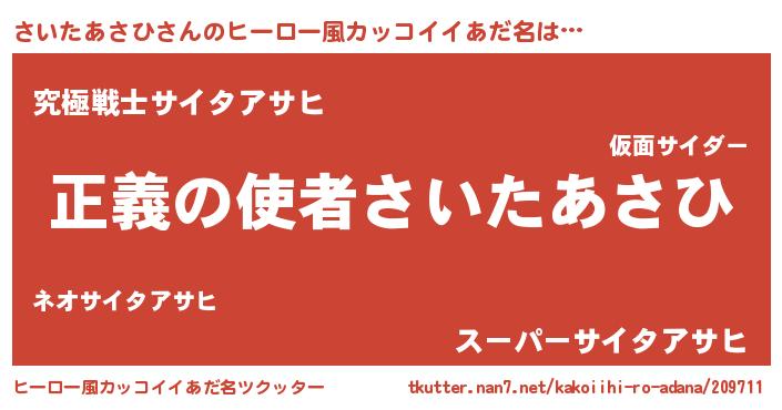 さいたあさひさんのヒーロー風カッコイイあだ名をツクッター!