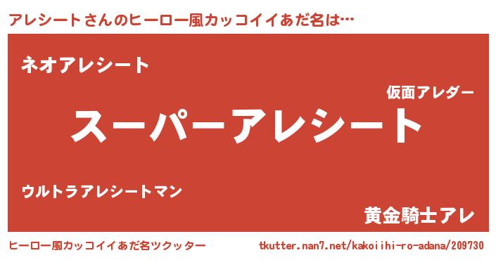 | 男性向けラノベタイトル風あだ名 | 『アレシートの憂鬱』『緋弾のアレシート』 |