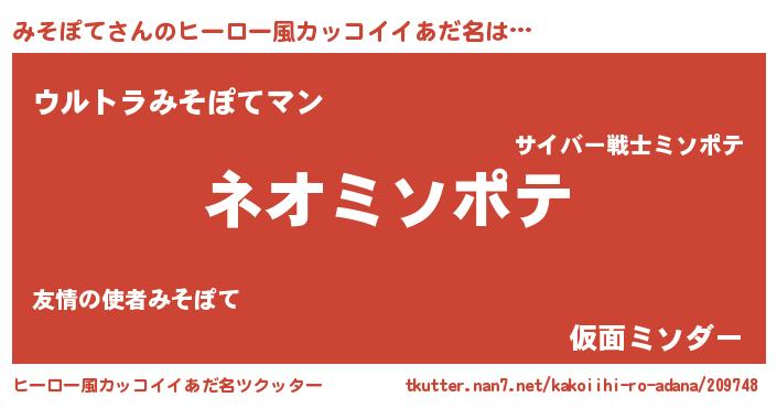 | 胡散臭い通販商品みたいなあだ名 | 『来世でも幸せになれる水素水…その名も「みそぽて」』 |