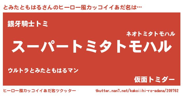 | 男性向けラノベタイトル風あだ名 | 『とみたともはる~年齢イコール彼女いない歴の魔法使い~』 |
