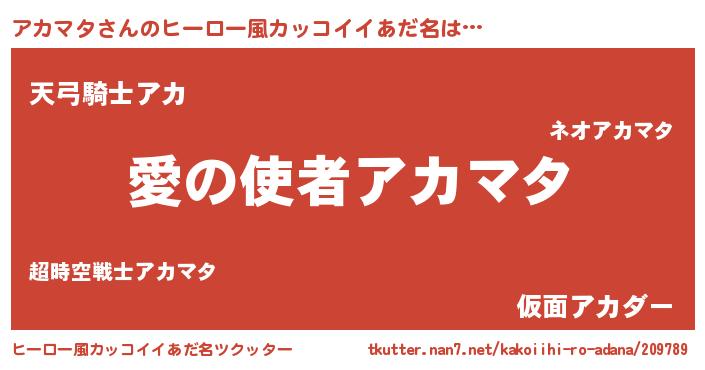 | 女子向けラノベタイトル風あだ名 | 『アカマタ恋絵巻』『アカマタ様がみてる』 |