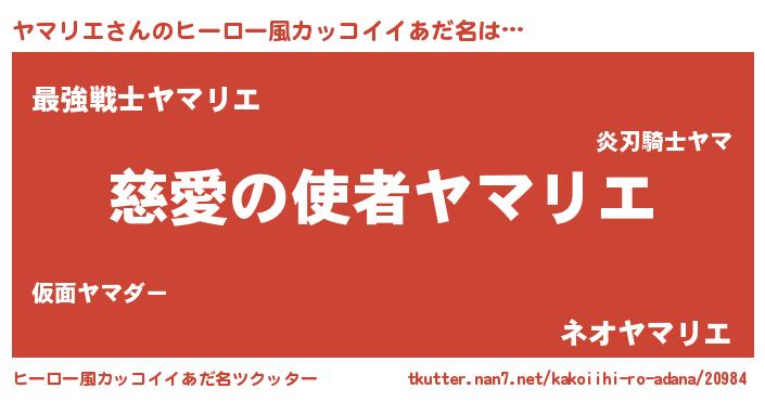 | 男性向けラノベタイトル風あだ名 | 『ノーゲーム・ノーヤマリエ』 |