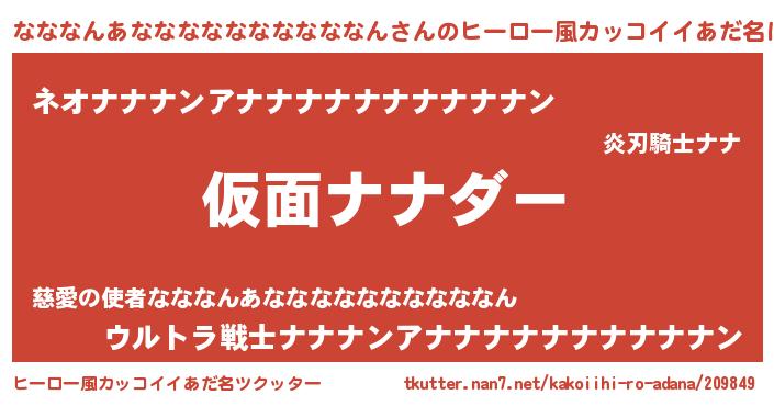 なななんあななななななななななんさんのヒーロー風カッコイイあだ名をツクッター!