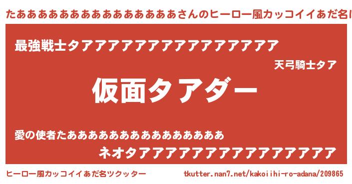 | 男性向けラノベタイトル風あだ名 | 『この素晴らしい世界にたあああああああああああああああを!』 |