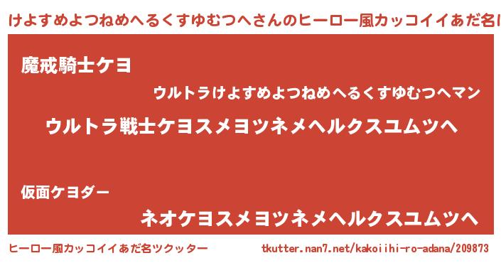 | 料理風あだ名 | 『けよすめよつねめへるくすゆむつへごはん』 |