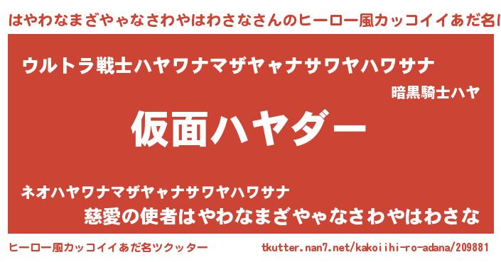 | 意味不明あだ名 | 『住所不定無職はやわなまざやゃなさわやはわさな(9歳)』 |