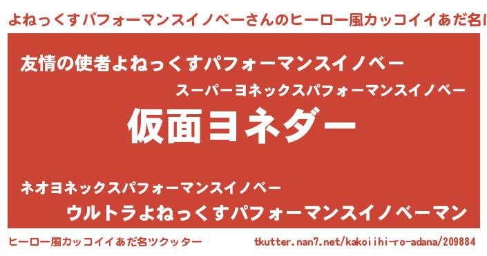 | 男性向けラノベタイトル風あだ名 | 『魔弾の王とよねっくすパフォーマンスイノベー』 |