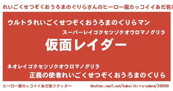 | 意味不明あだ名 | 『住所不定無職れいごくせつぞくおうろまのぐりら(5歳)』 |