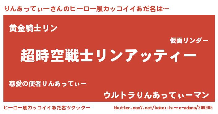 | 女子向けラノベタイトル風あだ名 | 『りんあってぃーなんてお断りですっ。』 |