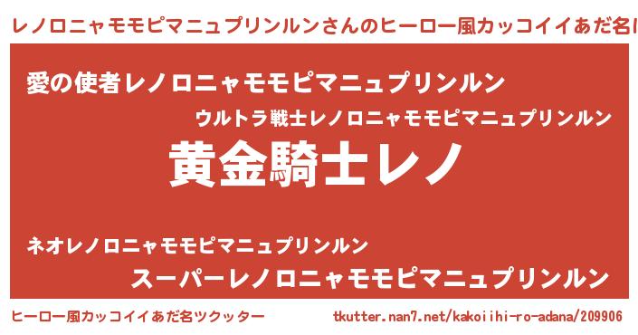 | 伝説のあだ名 | 『孤高の魔法使いレノロニャモモピマニュプリンルン』 |