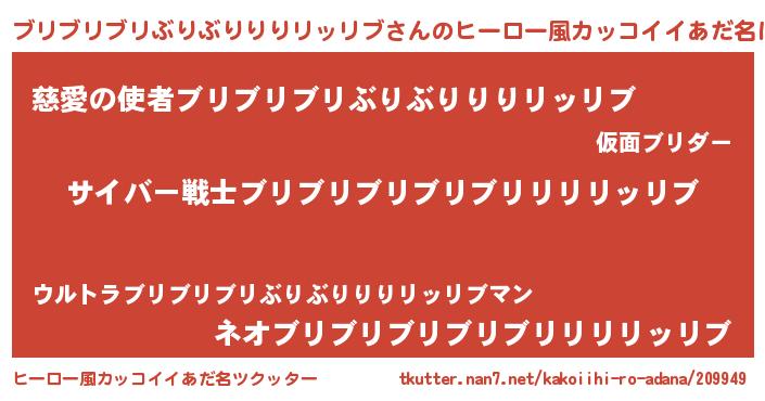 | 男性向けラノベタイトル風あだ名 | 『魔法科高校のブリブリブリぶりぶりりりリッリブ』 |