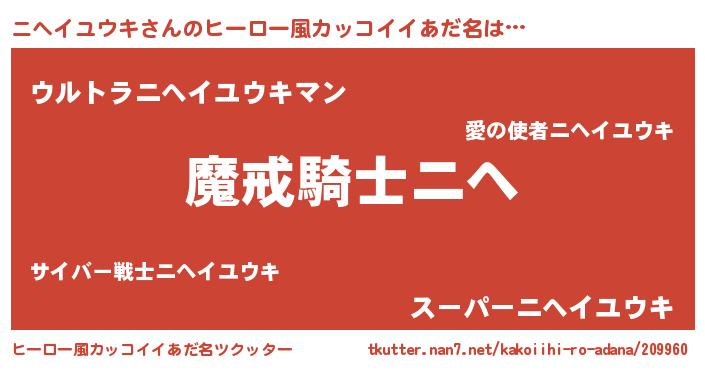 | ポケモン風あだ名 | 『ヒニヘイユウキ』『ニヘキング』 |