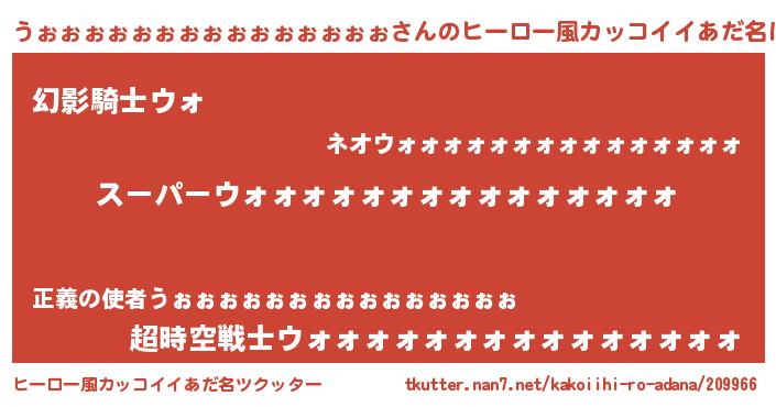 | 女子向けラノベタイトル風あだ名 | 『(仮)うぉぉぉぉぉぉぉぉぉぉぉぉぉぉぉのやんごとなき事情』 |