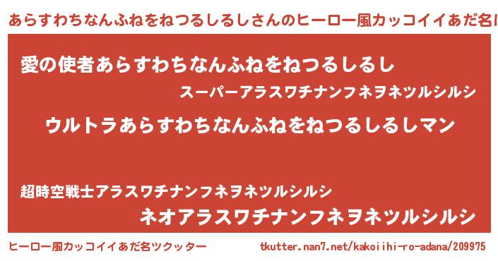 | 意味不明あだ名 | 『あらすわちなんふねをねつるしるしフォーエバー』 |