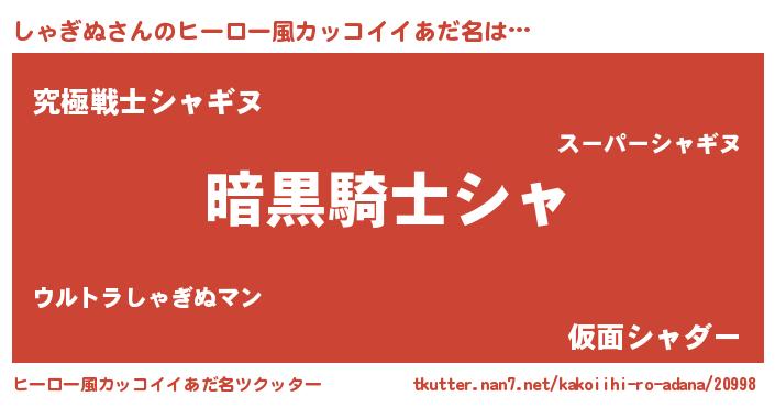 | 胡散臭い通販商品みたいなあだ名 | 『信頼と実績のペンダント…その名も「しゃぎぬ」』 |